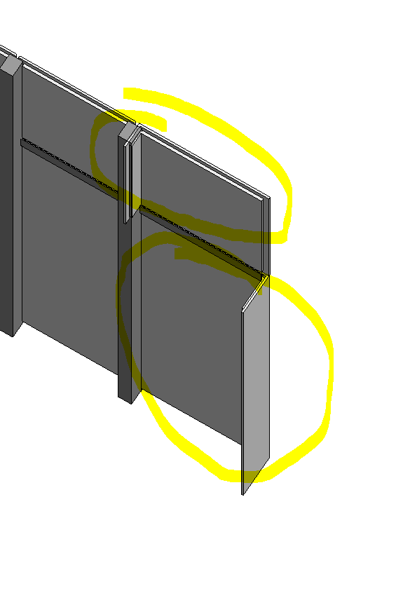 Move the cursor over an edge of the curtain panel to be customized until one of its mullions or the curtain wall highlights.